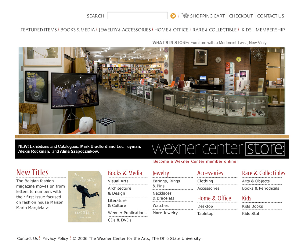 In the redesign, a focus was placed on creating a site with a simpler information architecture, more aesthetic user interface, and more conventional browsing and checkout features. Interior pages were organized to allow viewers a succinct view of available products, with full descriptions including title, publisher and publication date, all presented at sufficient size and resolution for easier viewing.