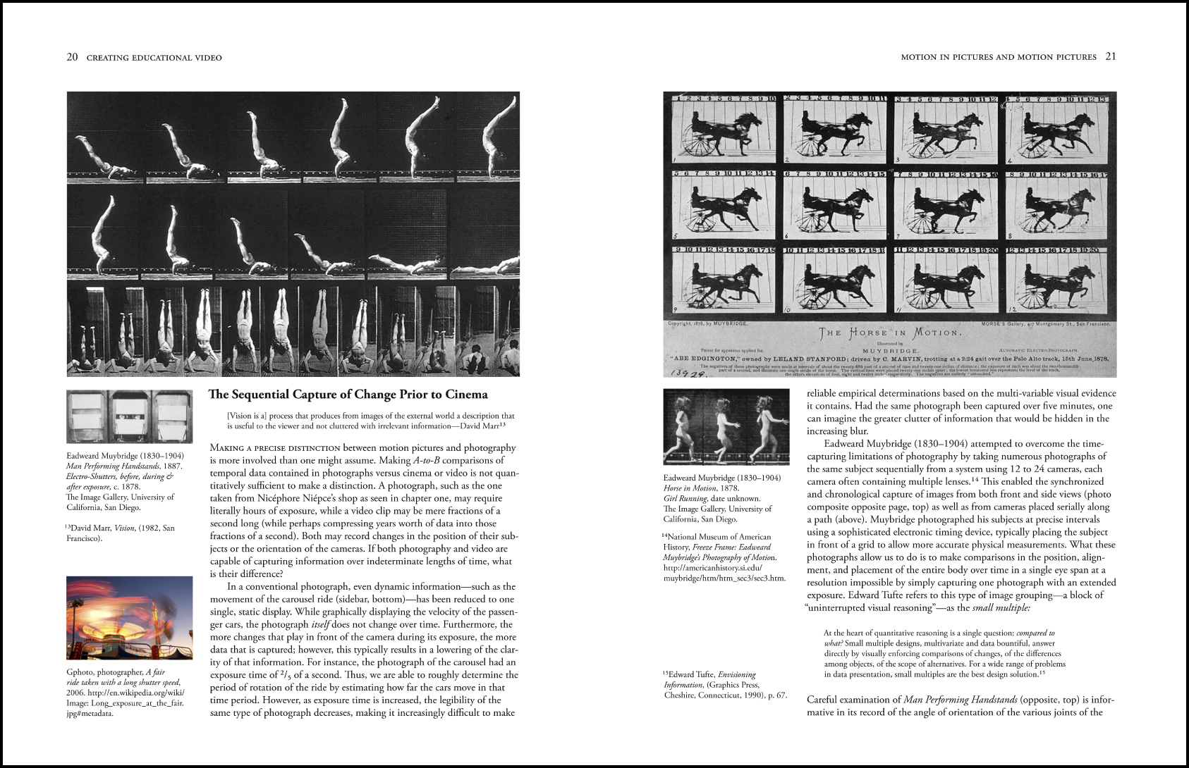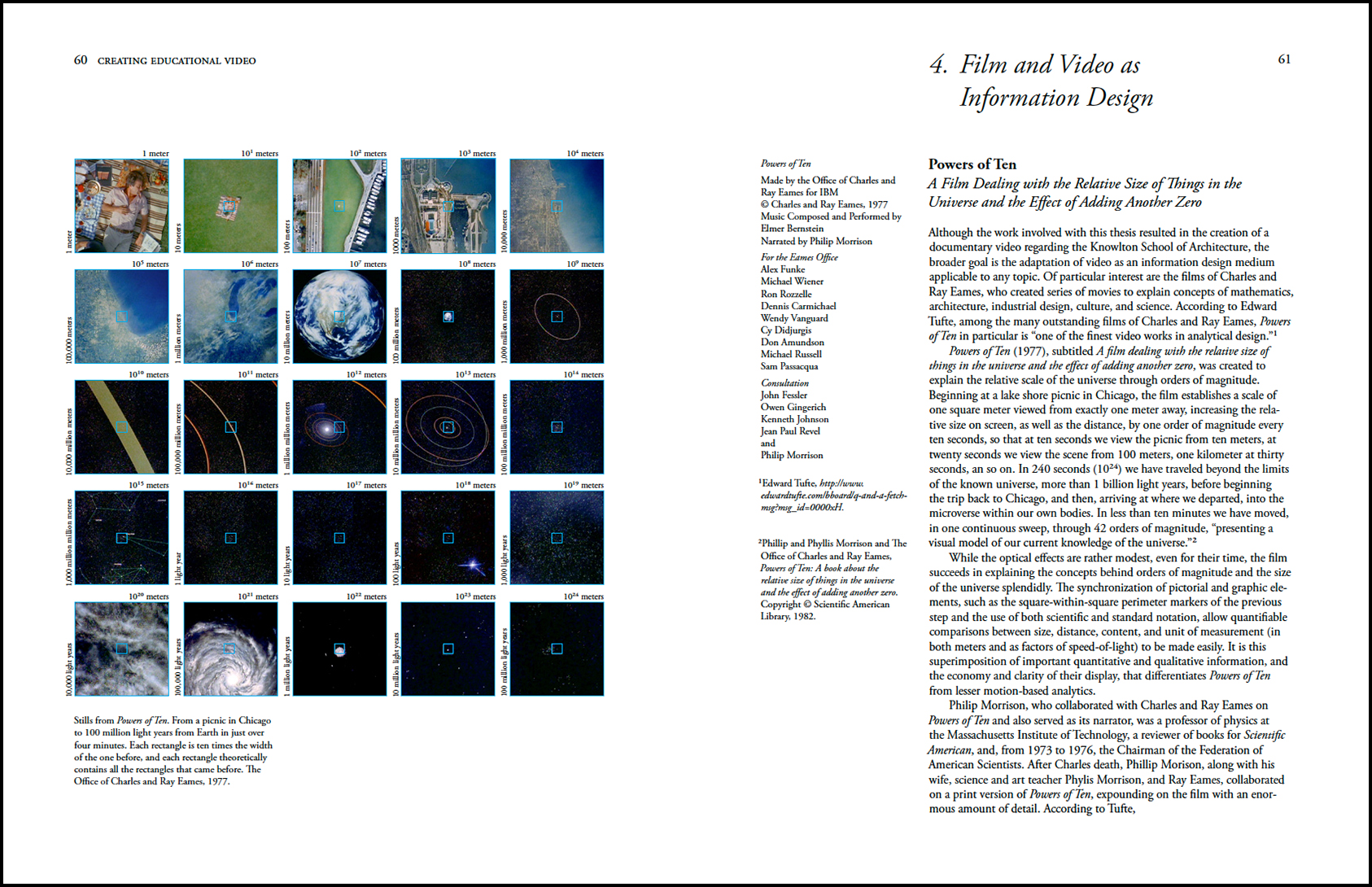 Visual communication designers are skilled in many of the elements necessary to create excellent educational video, such as the size, placement, orientation, scale, cropping, and selection of graphic evidence and its clear association with textual/verbal support. Recent advances in digital video present a powerful medium for the creation of engaging educational content, even with limited funding. Professional video editing and animation programs, desktop computers, and DSLR cameras allow designers to develop full production capabilities for a fraction of the cost of only several years ago, helping to level the field between individual filmmakers of modest means and larger production houses. Designers must rise to the challenge.