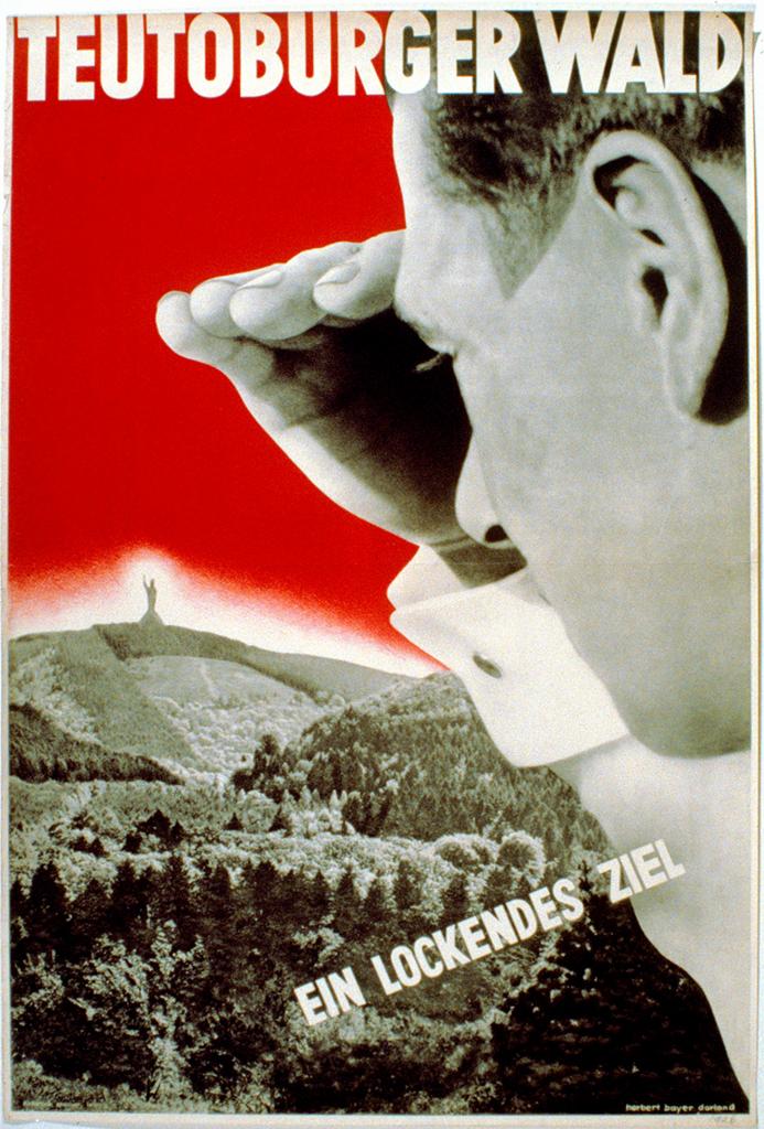 Dramatic changes in scale, asymmetrical layouts, photomontage, and a minimization of unnecessary detail are hallmarks of Bayer’s style.