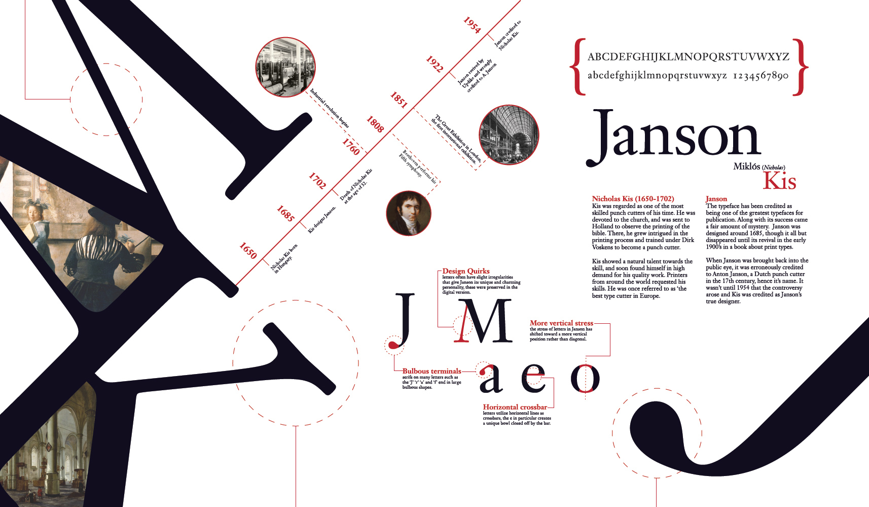 Students produce poster-sized information graphics to explain both the historical development and formal idiosyncrasies of an assigned typeface.