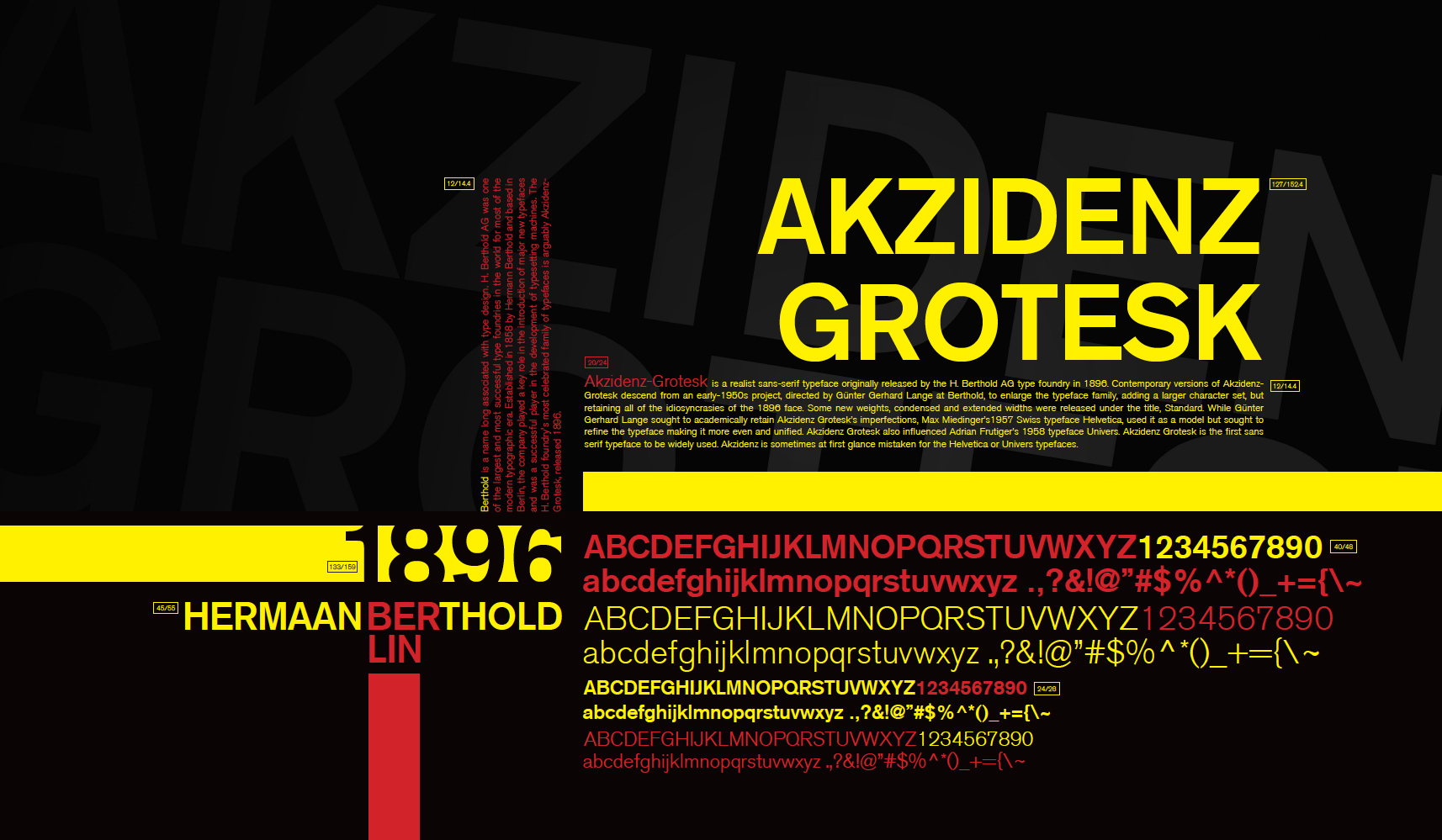 Akzidenz Grotesk Hermaan Berthold 1896 Sans Serif Published November 27, 2012 at 1714 × 999 in Basic Typography ← Previous Next → Share this:ShareTweetShare on Tumblr Click to share on Reddit (Opens in new window) Reddit Pocket Click to email a link to a friend (Opens in new window) Email Click to print (Opens in new window) Print Like Loading...